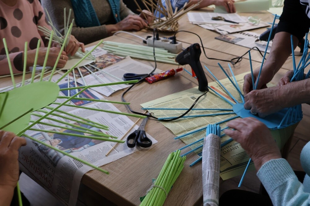 Kolorowe koszyczki powstawały we wtorek (24 stycznia) podczas zajęć plastycznych Klubu Senior +. Wszystkie zostaną przekazane Szkole Podstawowej nr 3 w Orzeszu Zawadzie, która przygotowuje się do 31. Finału Wielkiej Orkiestry Świątecznej Pomocy.