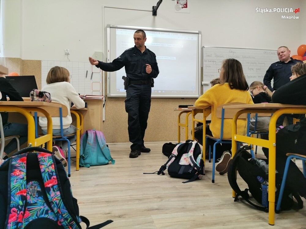 Jeden z dzielnicowych Komisariatu Policji z Orzesza oraz profilaktyk z Komendy Powiatowej Policji w Mikołowie odwiedzili wczoraj uczniów z Szkoły Podstawowej nr 8 w dzielnicy Mościska. W zajęciach uczestniczyli uczniowie klas od IV do VIII. Sposób przekazania wiedzy dostosowany został do wieku dzieci, jednak wszystkim przedstawiona została tematyka dysfunkcji wzajemnych relacji, hejtu i przemocy rówieśniczej.