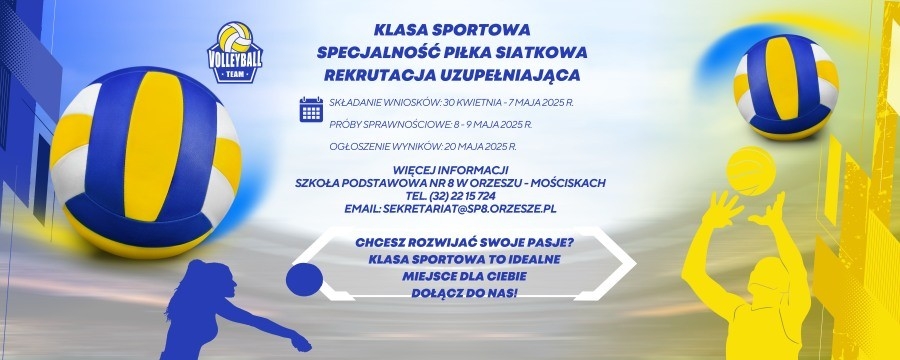 Szkoła podstawowa nr 8 zaprasza wszystkich młodych sportowców do zapisu do klasy sportowej piłki siatkowej. To wyjątkowa okazja, aby rozwijać swoje umiejętności sportowe w dynamicznej i pasjonującej dziedzinie!