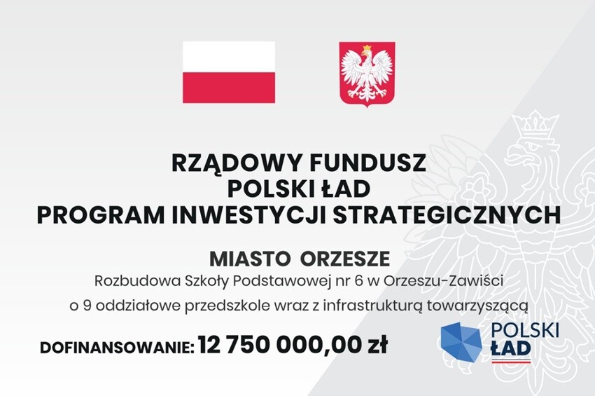 Szkoła Podstawowa nr 6 w Orzeszu Zawiści zostanie rozbudowana o 9 oddziałowe przedszkole. W zakres inwestycji wchodzi również budowa placu zabaw o powierzchni 497 m2 oraz budowa boiska trawiastego do piłki nożnej.