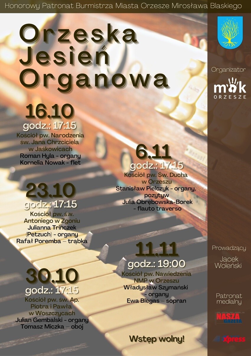 Przed nami trzecia odsłona Orzeskiej Jesieni Organowej, którą organizuje Miejski Ośrodek Kultury. W październiku i listopadzie w Orzeszu poznamy znakomitych artystów. Wstęp na wszystkie pięć koncertów jest bezpłatny.