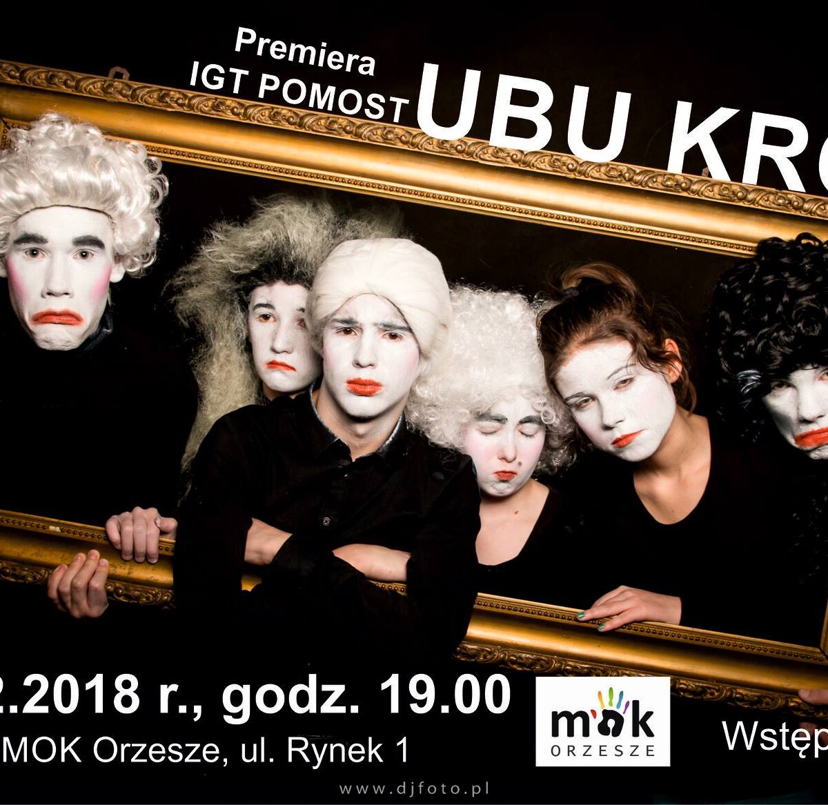 W sobotę 10 lutego na godz. 19:00 serdecznie zapraszamy na najnowszy spektakl naszej grupy teatralnej IGT POMOST - "Ubu Król"( premiera tego spektaklu była 26.05.2017), który odbędzie się Miejskim Ośrodku Kultury.