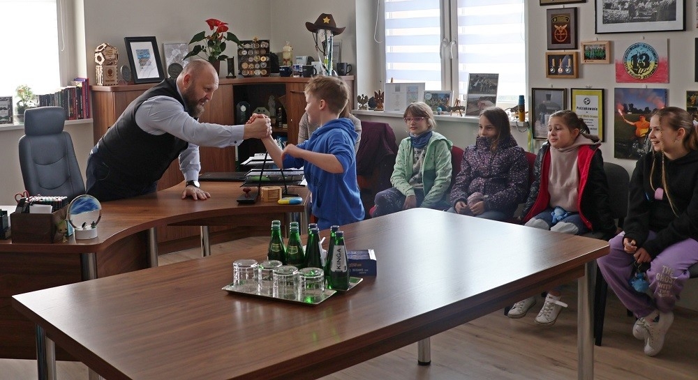 Podczas wizyty trzecioklasiści nie szczędzili ciekawych pytań, które dotyczyły zarówno pracy burmistrza, jak i samego urzędu. Młodzi goście chcieli wiedzieć, jak burmistrz trafił na to stanowisko, co to jest kadencja, kto namalował obraz wiszący w gabinecie oraz jakie sprawy można załatwić w urzędzie. Pytania nie miały końca – dzieci były zafascynowane odpowiedziami i chciały wiedzieć jak najwięcej.