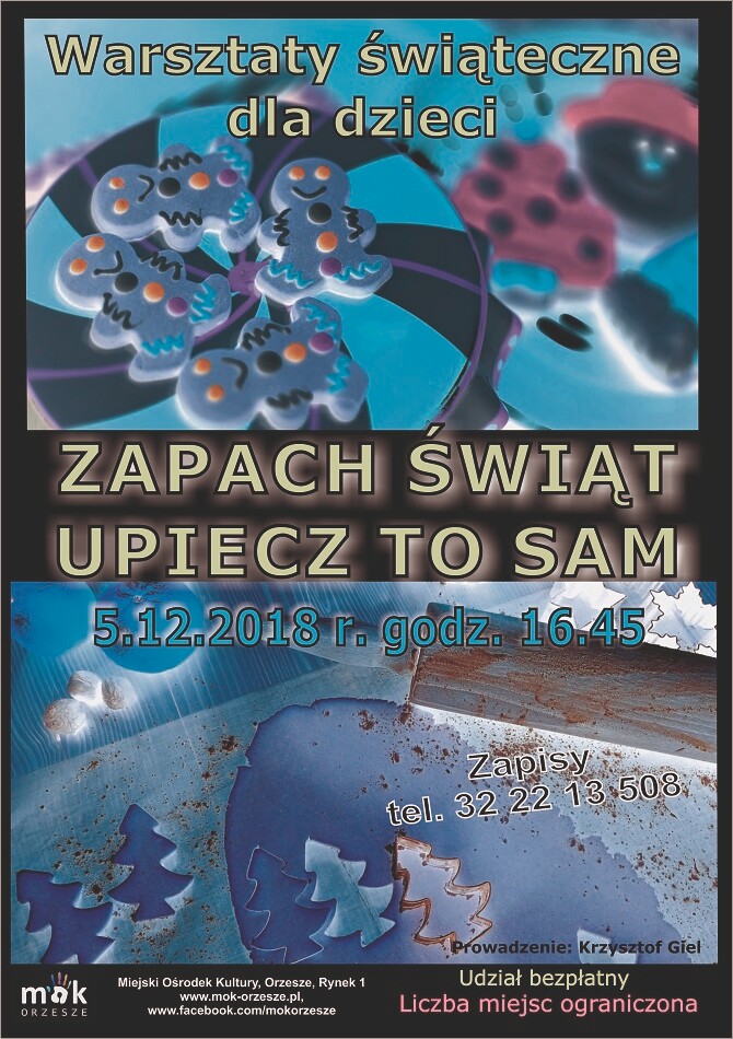Z okazji zbliżających się Świąt Bożego Narodzenia, 5 grudnia, godz. 16:45 w MOK, odbędą się specjalne warsztaty kulinarne dla dzieci. Uczestnicy warsztatów pod okiem Szefa Kuchni będą przygotowywać pachnące wypieki, pierniki i inne smakołyki na wigilijny stół.