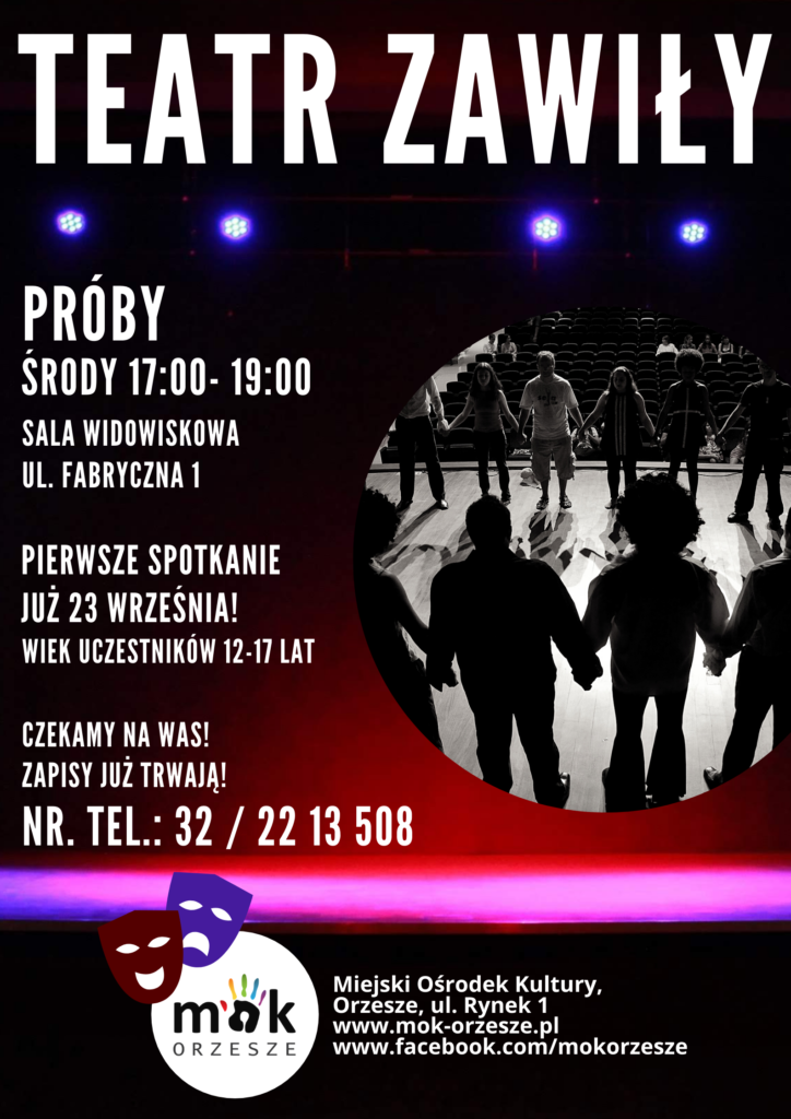 Ogłoszono zmianę godzin prób Teatru Zawiłego. Odbywać będą się w środy w godzinach 17:00-19:00 w Sali Widowiskowej przy ulicy Fabrycznej 1.